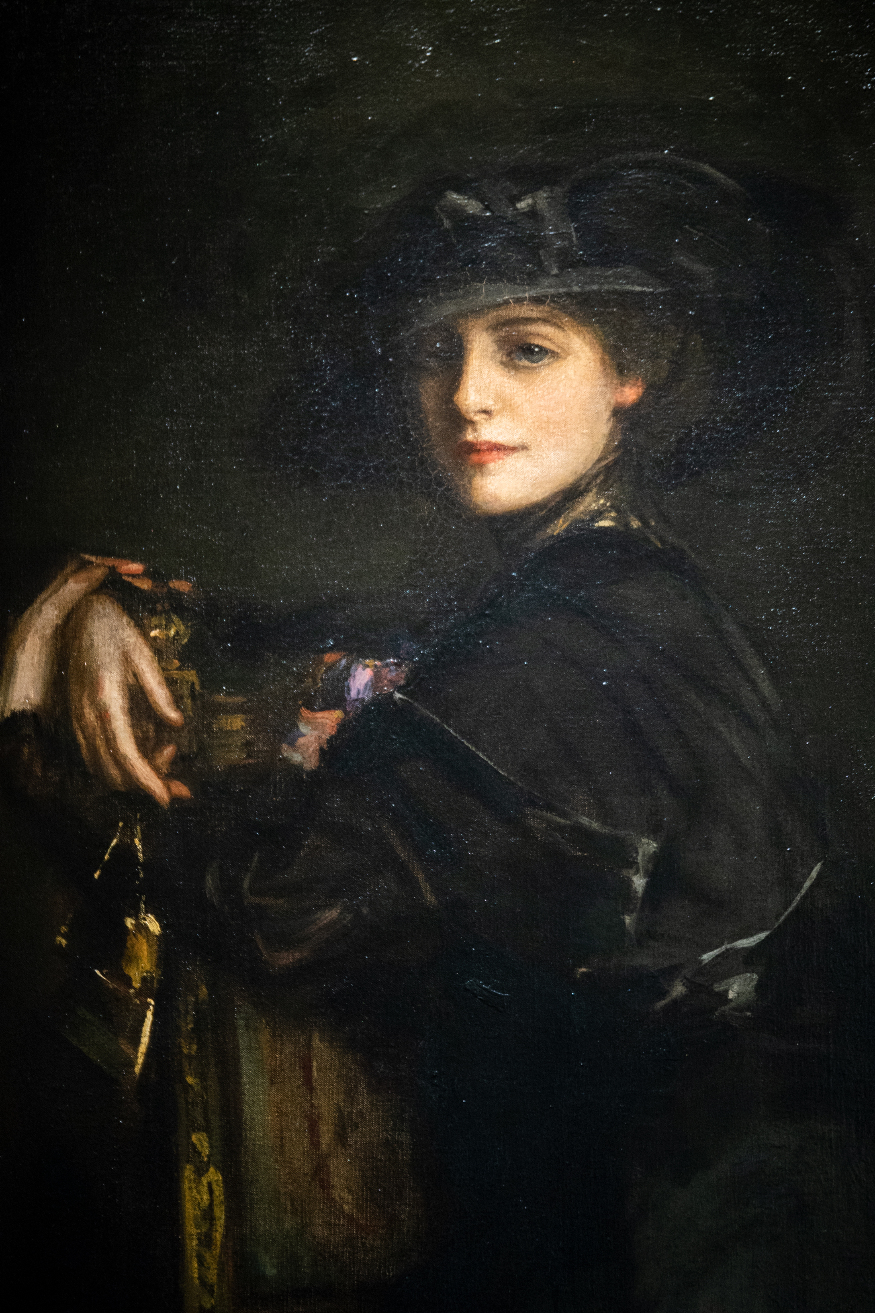 Vous voyez cette peinture posée à gauche et au dessus de ce texte ? La dame en noir de Sir John Lavery. J’ai croisé son regard dans un musée en Irlande et je dois dire qu’elle m’a littéralement charmé. Il y a quelque chose dans ce regard qui ne peut que vous faire sourire, rougir. Cette femme oscille entre deux attitudes : le sérieux et l’amusement. La pose non naturelle qu’elle a sur cette chaise nous place tout de suite dans un contexte anormal. On sait que tout est faux, qu’elle attend le dernier coup de pinceau, que l’artiste la libère. Mais elle nous regarde, elle nous fixe à travers le temps avec un message dans les yeux. Et ce message là, même s’il est travaillé, est lui tout à fait honnête. Ce tableau est hybride, il fait le pont entre la peinture et la photographie. N’aurions-nous pas pu prendre cette dame en photo telle qu’elle est représentée ? Saisir cet instant précis où elle plisse les yeux. Peut être même est-ce le cas : le peintre a pu la prendre en photo avant de la peindre à partir de ce support. Mais même là, nous sommes face à une peinture et non une photographie, ce n’est pas le modèle qui a transmis le message mais le peintre qui a tracé ses traits. Combien de temps a-t-il passé pour donner vie à cette femme ? Quel a été son travail sur ce regard ? Et surtout comment a-t-il réussi à s’effacer pour que sa création prenne vie, pour que l’on y croit et que l’on oublie qu’un homme l’a produit ?