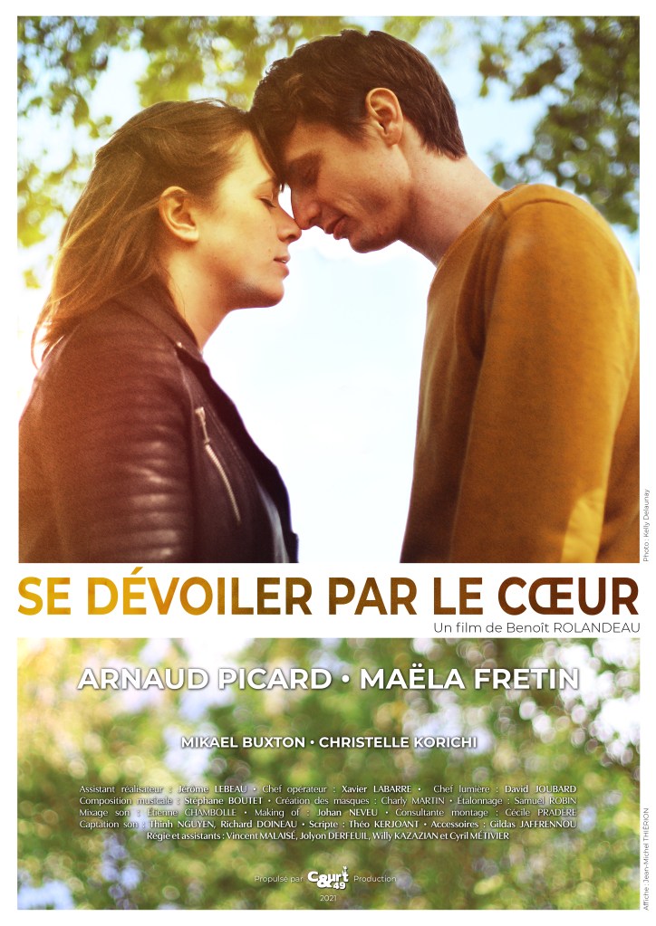 « Se dévoiler par le cœur » est un court métrage de quinze minutes environ écrit et réalisé par Benoît Rolandeau. Ce film raconte l’histoire d’un amour naissant entre deux êtres : Pierre et Lise ; ils se rencontrent un soir par hasard dans une boite de nuit. Au premier regard naît une évidence ; nul besoin de mots, leurs gestes, leurs sourires parlent d’eux-mêmes. Malheureusement, lorsqu’ils se revoient, leurs peurs respectives les conduisent à douter d’eux même et de l’autre. Mais au lieu de renoncer, ils vont faire preuve de courage pour donner une chance à leur histoire. Ils évoluent dans un univers proche du nôtre où les masques abstraits, que l’on peut porter dans la vie de tous les jours, ont une présence physique.